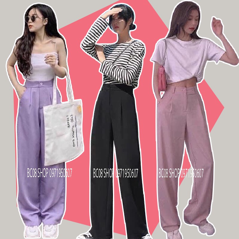 Giới thiệu Quần Ống Suông dáng dài kéo khóa basic 3 màu Tím Hồng Đen đủ size