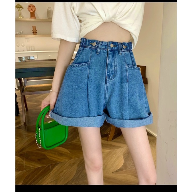 Giới thiệu Quần short bò nữ cạp cao mặc lên siêu xinh_001