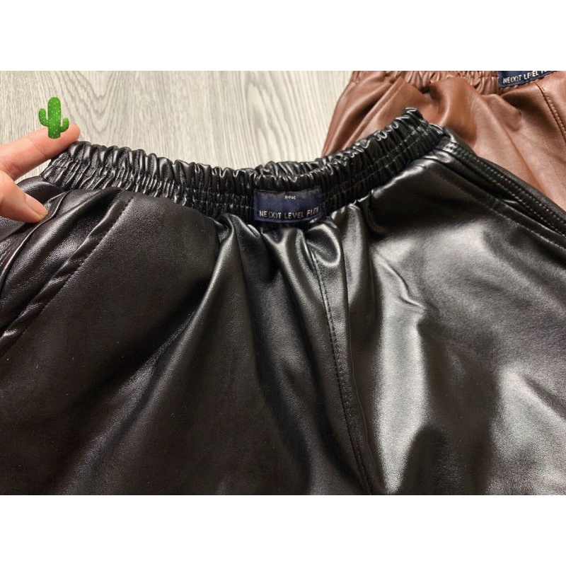 Quần short da cạp chun dáng phồng có túi ,Quần sooc da nữ thời trang hàn