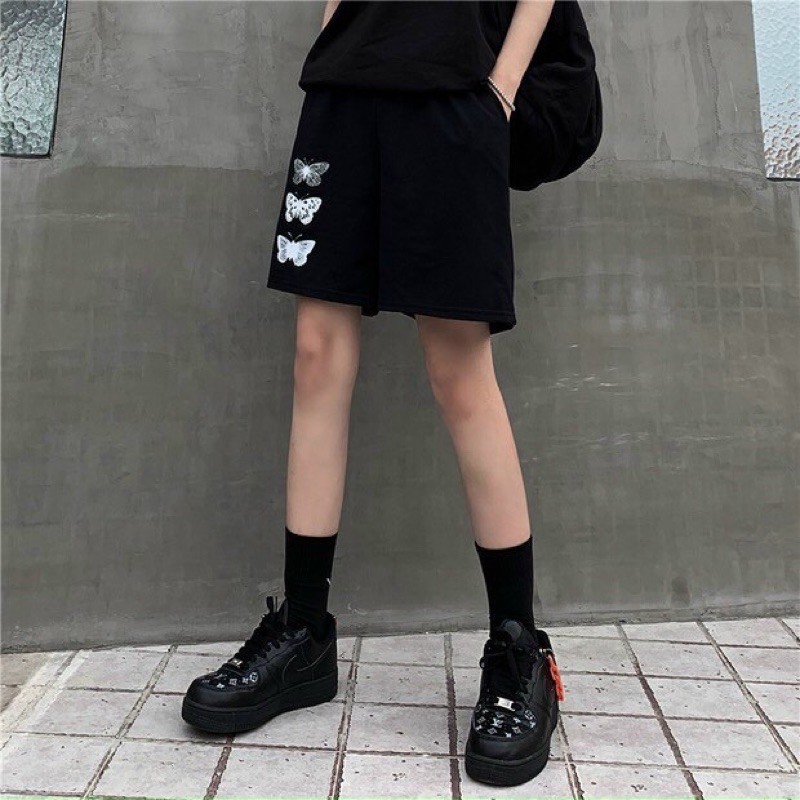 Thời Trang Nữ > Quần đùi > Quần đùi || Quần short đen in hình bướm unisex nam nữ - Quần short thun ống rộng thể thao
