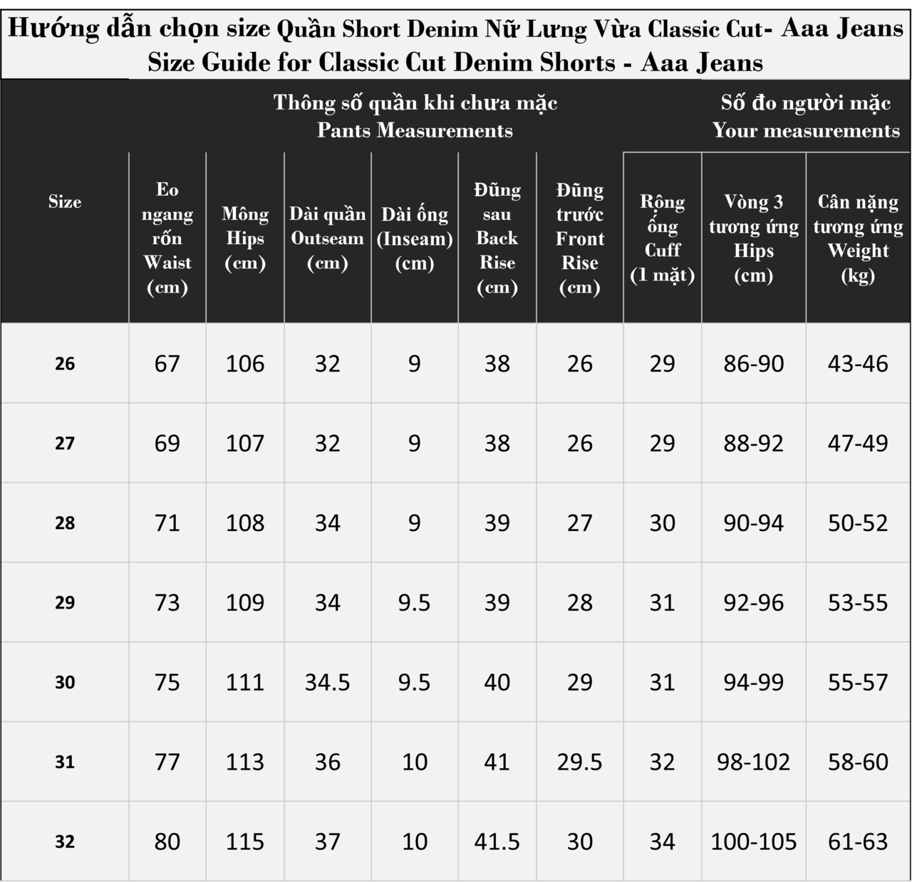 • Tên sản phẩm: Quần Short Denim Nữ Lưng Vừa Classic Cut Aaa Jeans