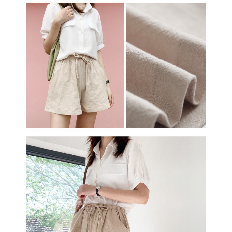 Giới thiệu Quần short đũi ngắn thắt nơ, Quần đùi vải ống rộng nữ cạp chun siêu nhẹ thoáng mát
