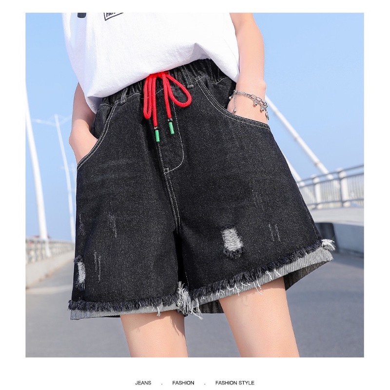 Thời Trang Nữ > Quần đùi > Quần đùi || quần short jean big size lưng thun wash rách màu đen size 65-95kg