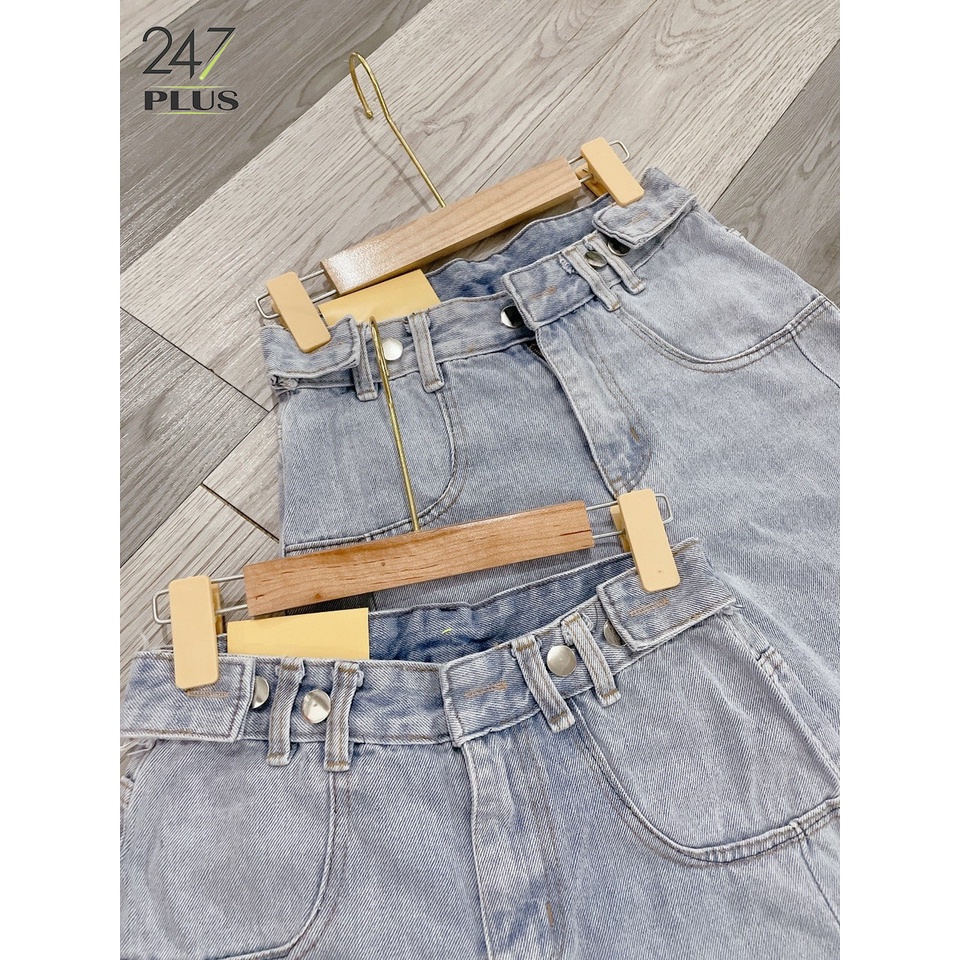Quần short jean ống rộng có cúc điều chỉnh eo, quần đùi chất bò mềm mịn