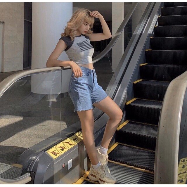 Được cái quần short jeans lửng kiểu nữ trơn suông ôm nhẹ (quần đùi bò ngố) này dễ hợp dáng lắm nha, mix croptop ôm, áo bánh bèo hay thun form rộng đều chuẩn <3