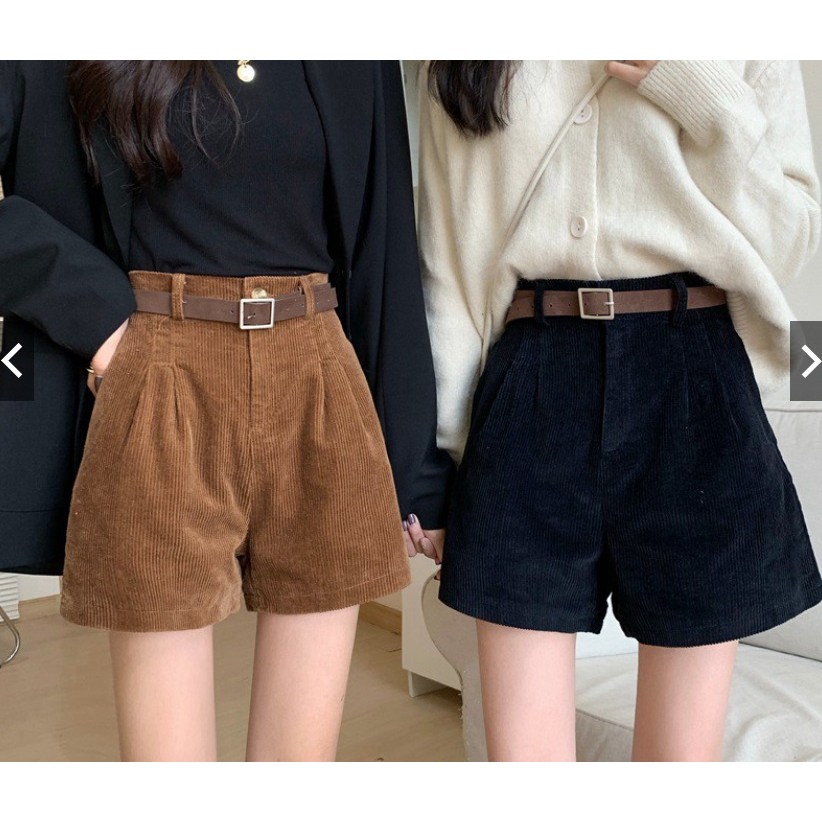 Quần Short Cạp Cao Vải Nhung Cao cấp, KHÔNG KÈM ĐAI, màu ĐEN VÀ NÂU, Trend năm nay
