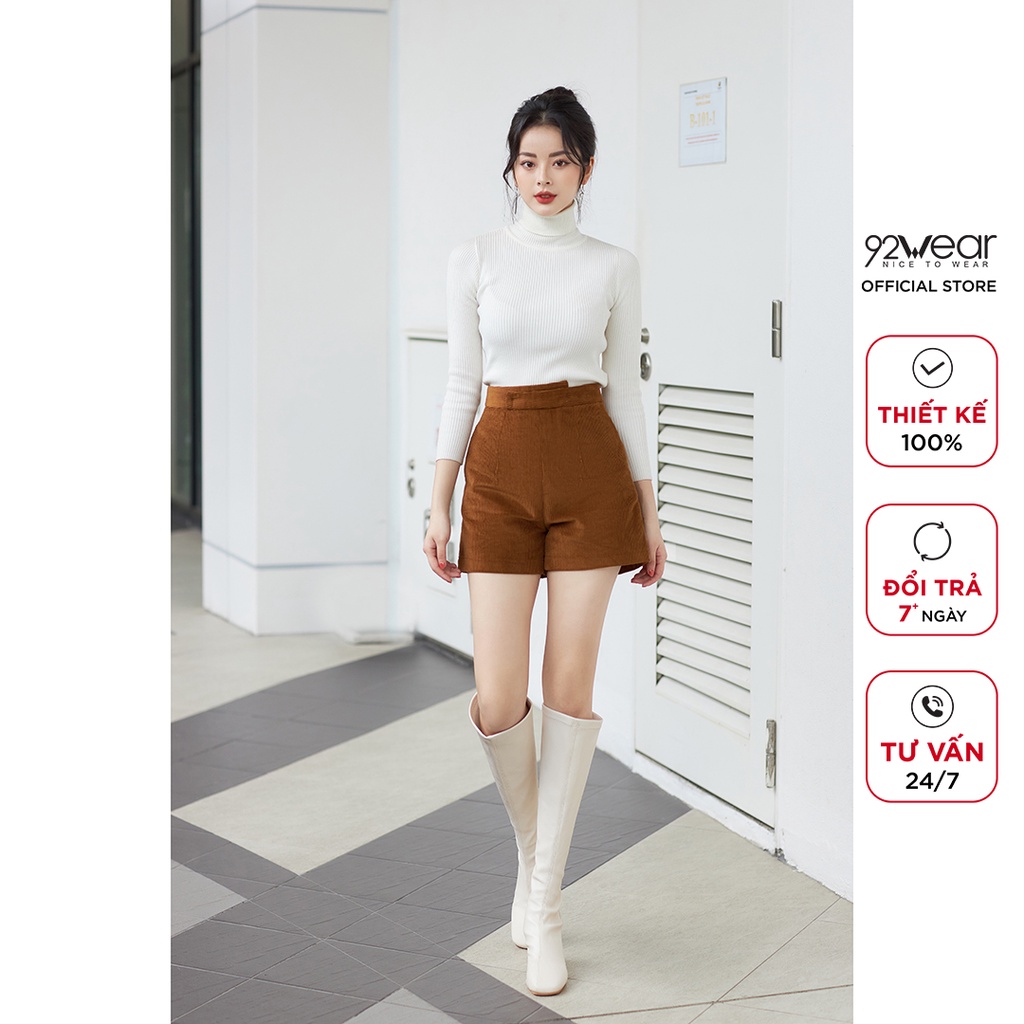 Giới thiệu Quần short nữ cạp cao 92WEAR, vải nhung tăm cao cấp, 3 màu dễ mix match SBA2112