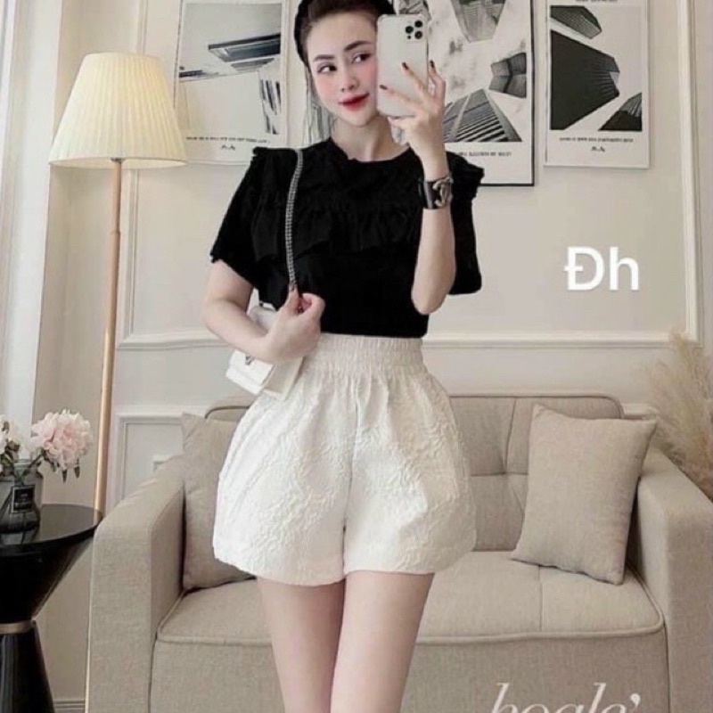 Quần short nữ dập nổi 3D xốp phồng hàng đẹp xinh xắn - Quần sooc xốp hoa phối nhiều kiểu áo năng động