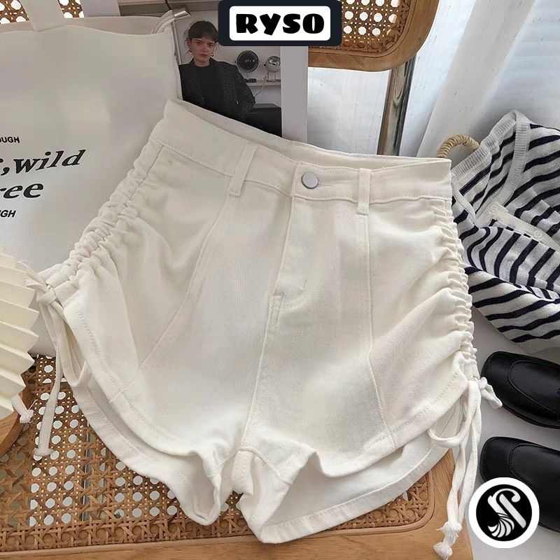 Quần short nữ đùi rút dây 2 bên chất kaki dày mịn cao cấp lưng cạp cao