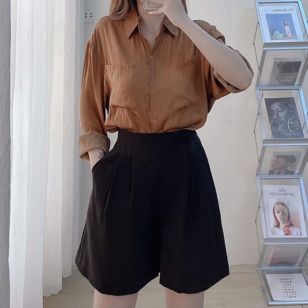 Quần short nữ li eo 02 quần đùi nữ lưng cao ống rộng chất kate lụa cao cấp CHIBEST AQA112