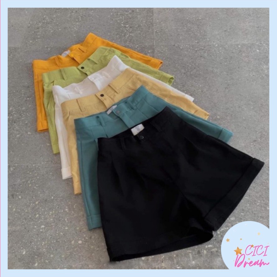 Giới thiệu Quần short nữ ống rộng cạp khuy, quần đùi nữ ống rộng khuy trước gấp gấu nhiều màu