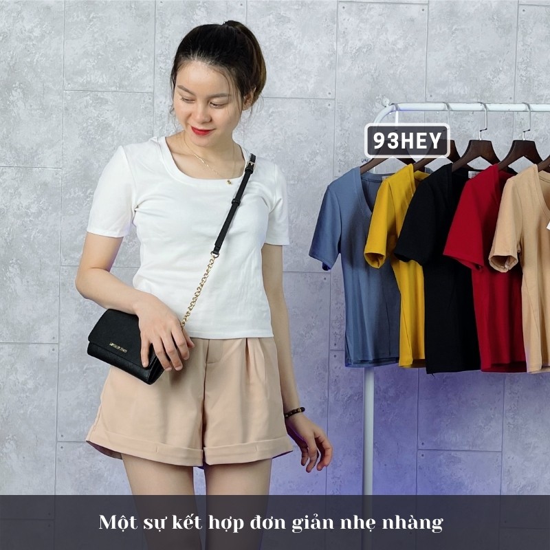 Giới thiệu Quần Short Nữ Ống Rộng Gấp Gấu Nhiều Màu Vải Tuyết Mưa 93HEY QS06