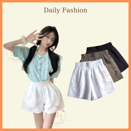 Giới thiệu Quần Short Nữ Ống Rộng Phồng Nhẹ Dập Nổi In Hoa 3D Cạp Chun Cao Sang Chảnh Daily