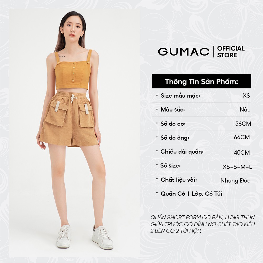 Giới thiệu Quần short nữ phối túi hộp GUMAC màu nâu đủ size, phong cách năng động QB427