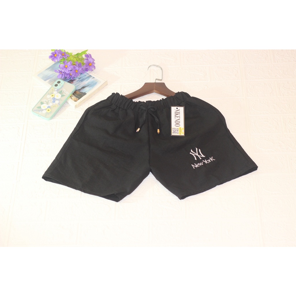 Quần Short Nữ Vải Đũi Màu Đen có túi sườn mềm mát FREESIZE 40-53KG