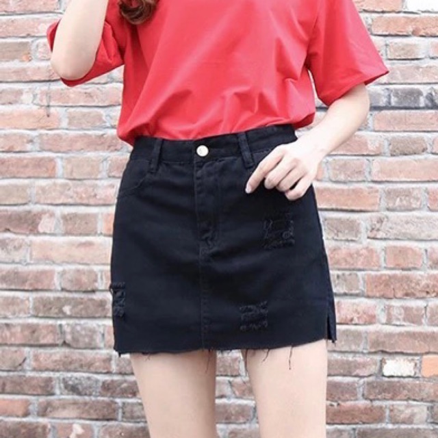 CHÂN VÁY JEAN NGẮN CÓ QUẦN TRONG ( QUẦN VÁY ) CO DÃN MẠNH LƯNG CAO MÀU ĐEN TUYỀN