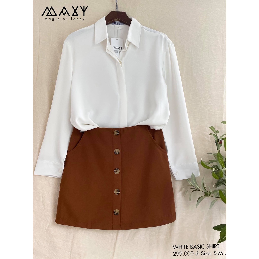 Giới thiệu Quần váy màu nâu nút dọc browny button skirt Maxy Workshop
