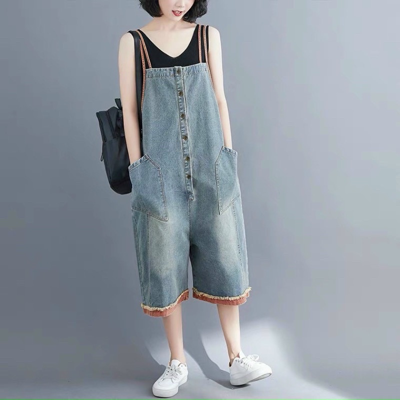 ✨Tên sản phẩm: Quần yếm jean baggy viền lai