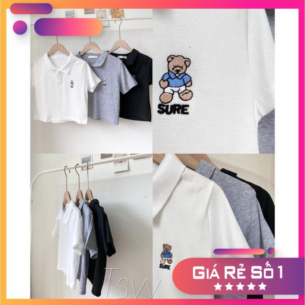 Thời Trang Nữ > Áo > Áo polo || [RẺ VÔ ĐỊCH] Áo Croptop Polo - Áo Croptop Cổ Bẻ Nữ Thêu Gấu Ulzzang