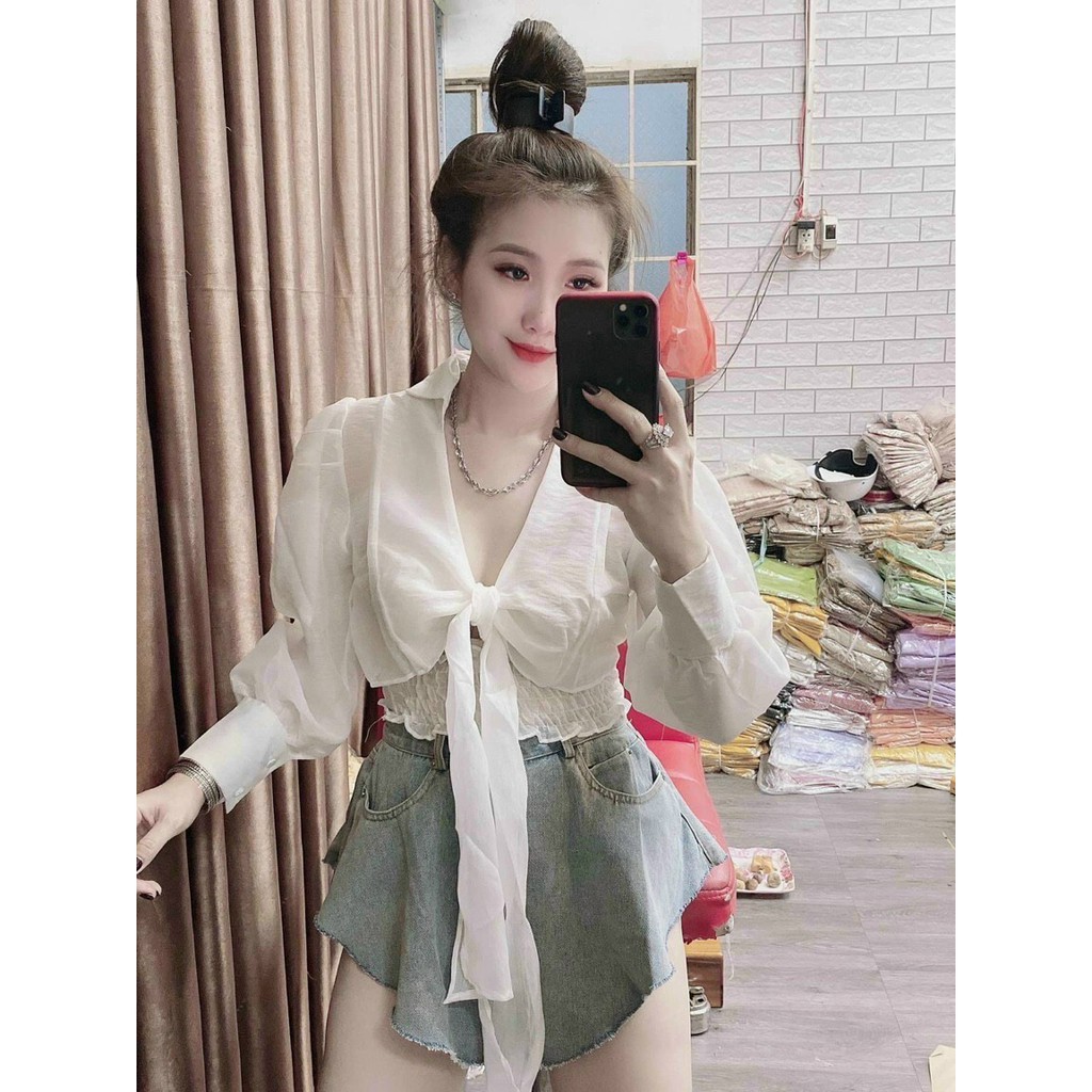 Thời Trang Nữ > Áo > Áo sơ mi || [RẺ VÔ ĐỊCH]ÁO VOAN TAY PHỒNG CỘT NƠ SIÊU XINH BG2910204