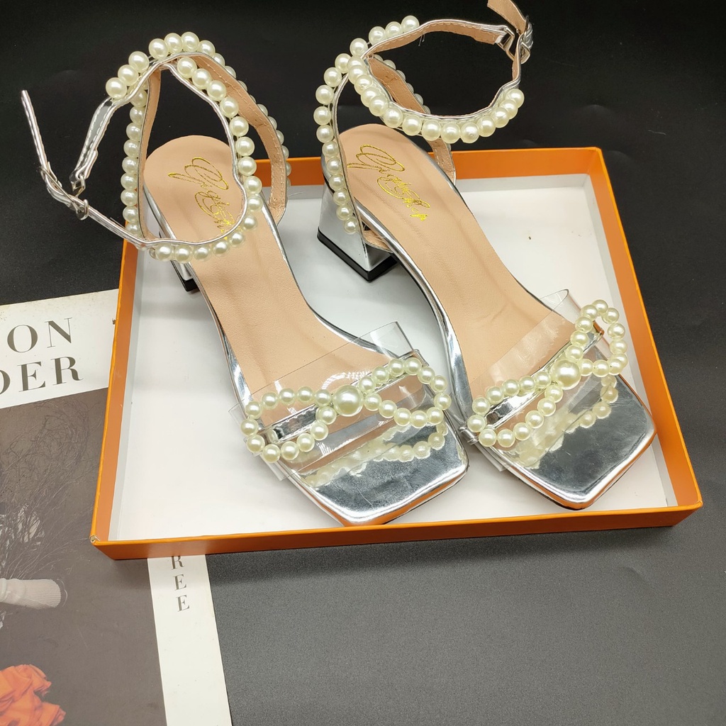 Giày cao gót thời trang phối ngọc gót vuông kiểu dáng cao 5cm