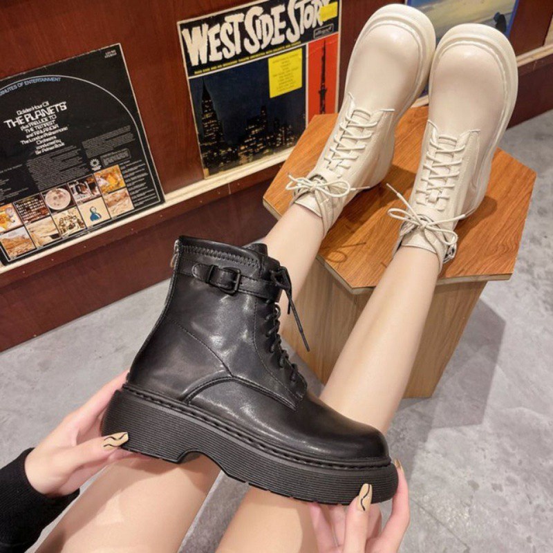 Giày Dép Nữ > Bốt > Bốt thời trang || (S149) Bốt nữ đế bánh mì cao cổ, dây buộc trước, khuy cài (mã F04- có khuy cài)