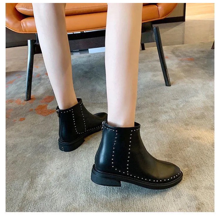 Giày Dép Nữ > Bốt > Bốt thời trang || (S169) Bốt nữ đế bệt 3 phân lót lông (mã 206-bốt nạm viền đinh)