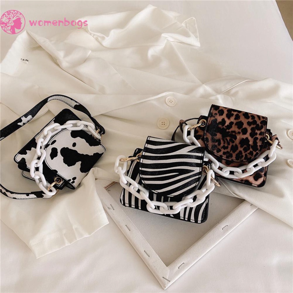Túi xách / đeo vai / đeo chéo da PU có tay cầm vòng xích acrylic thiết kế họa tiết động vật thời trang dành cho nữ