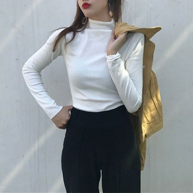 Áo thun dài tay cổ cao phong cách Hàn Quốc