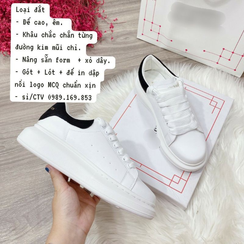 Giới thiệu {Có Sẵn) Giày thể thao Nữ Nam Trắng Đế Cao MCQ Gót Nhung Đen Có size Nam nữ (Size 36-43) Bản Dây To (Form rộng)