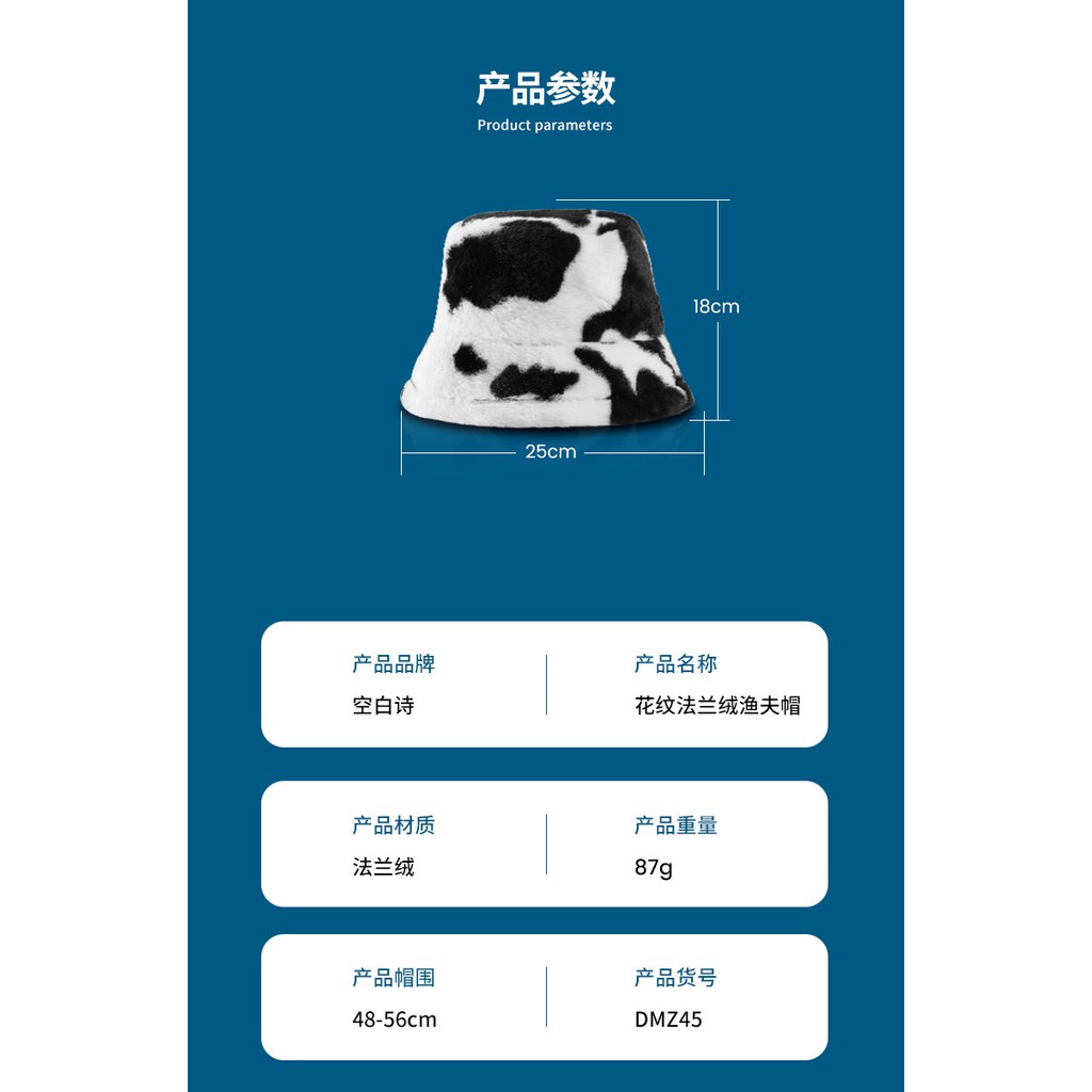 Giới thiệu [SẴN]-Mũ nón bucket lông mịn họa tiết bò đốm phong cách Ulzzang (M06)