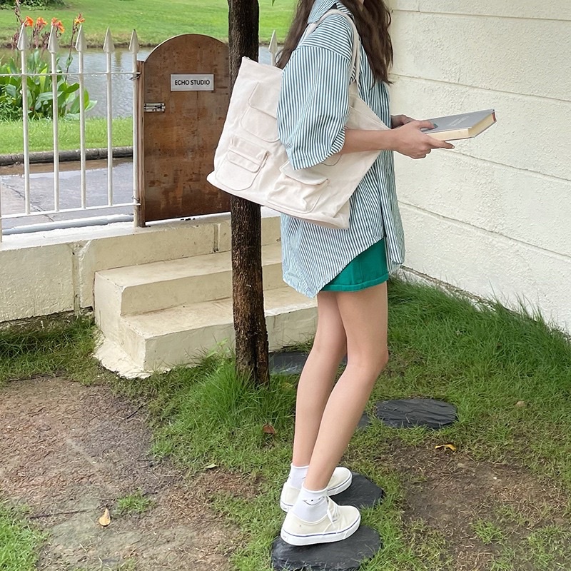 Túi Ví Nữ > Túi tote || (Có sẵn) Túi tote ULZZANG canvas sức chứa lớn dày dặn đế cứng form chắc chắn
