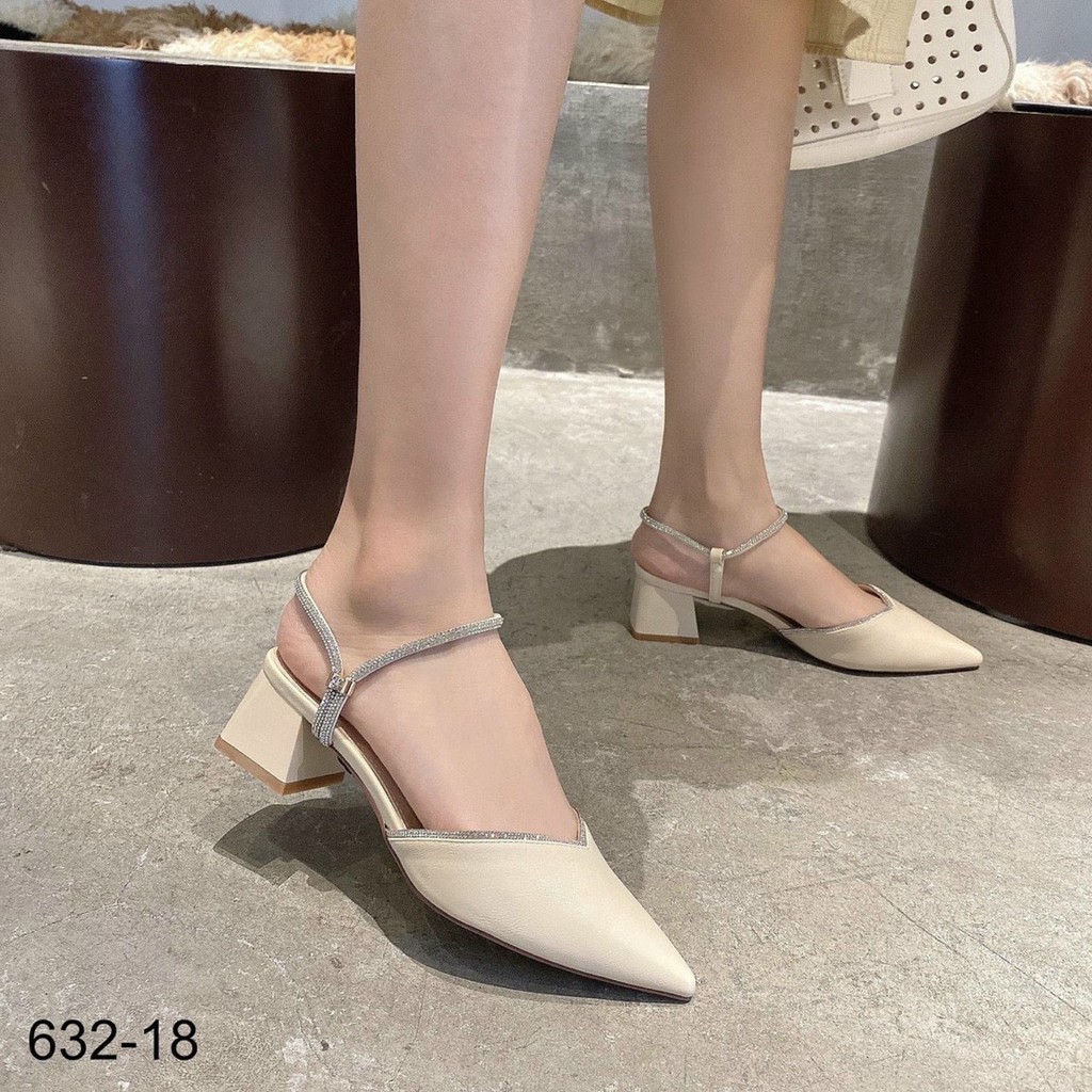 Sandal bít mũi da mềm mũi nhọn viền đá cổ chân trụ thấp, form gọn đi rất tôn dáng, chất liệu da mềm tạo cảm giác thoải mái cho bàn chân; phong cách trẻ trung năng động