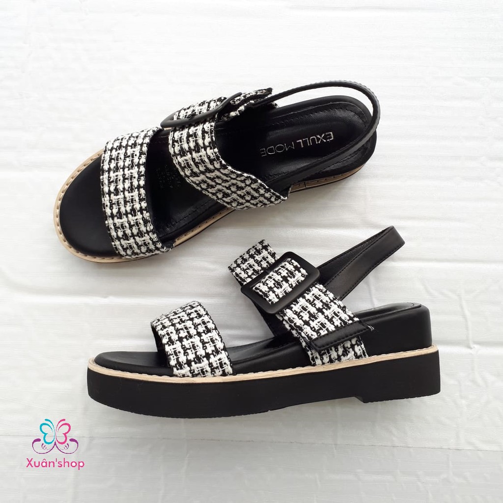 Mẫu sandal quai ngang họa tiết caro độc đáo, thời trang, lót đế rất êm chân, kiểu dáng thanh lịch, đế xuồng thấp cao 5.5cm
