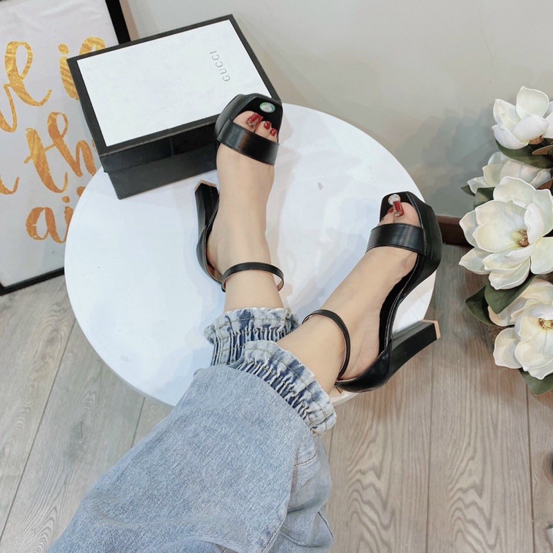 Sandal đúp quai ngang da mềm gót trụ 10p