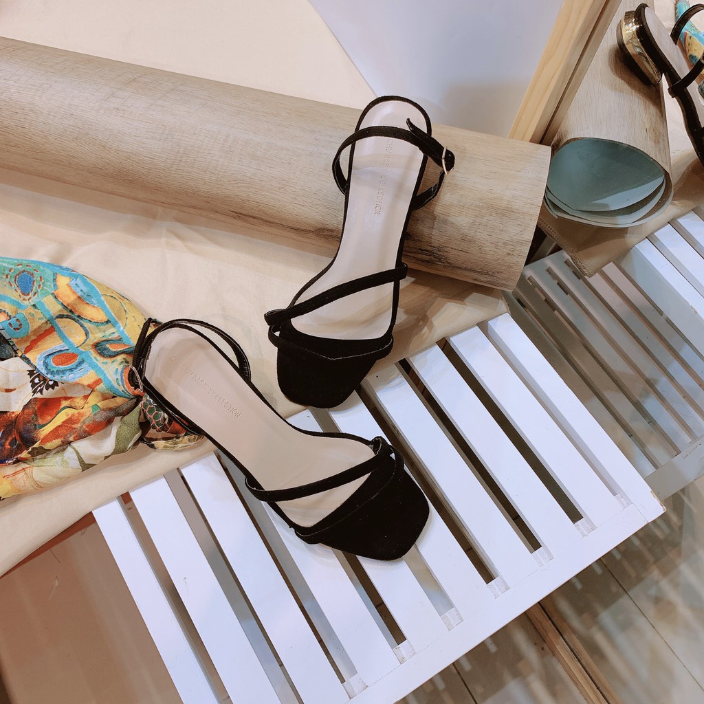 ______Sandal nữ 2 dây mảnh vát chéo gót vuông 3 phân phối viền vàng___