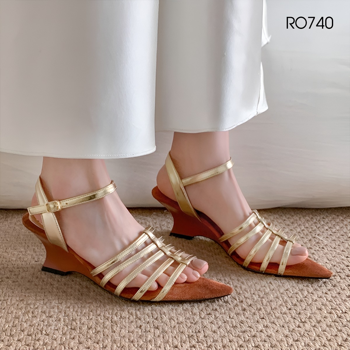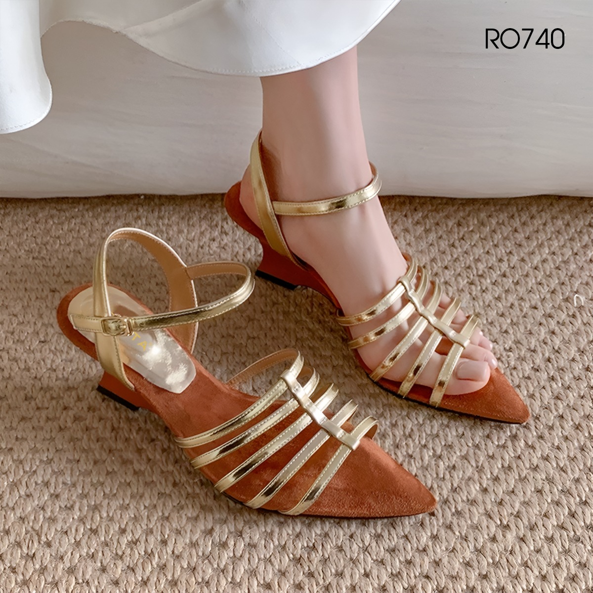MÔ TẢ SẢN PHẨM: Sandal nữ đế xuồng, quai ngang, mũi nhọn ROSATA RO740 - 5p - Vàng đồng - BKSTORE
