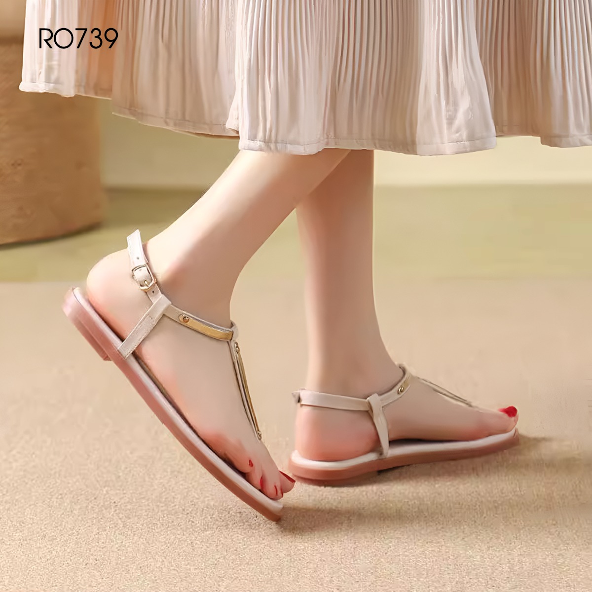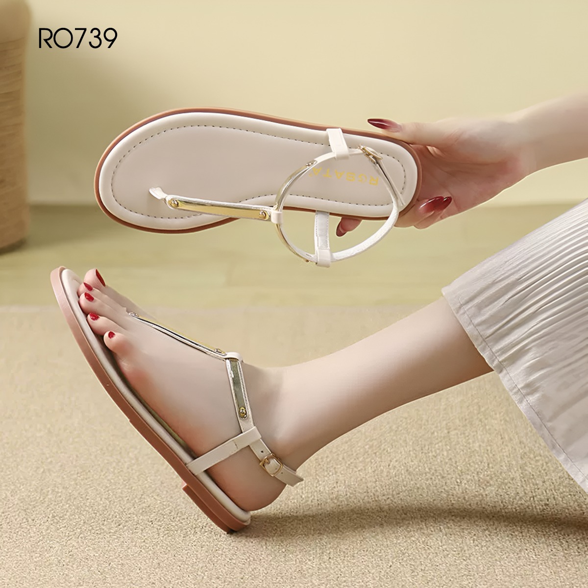 MÔ TẢ SẢN PHẨM: Sandal nữ quai xuôi, đế bệt ROSATA RO739 - 2p - Đen, Trắng - BKSTORE