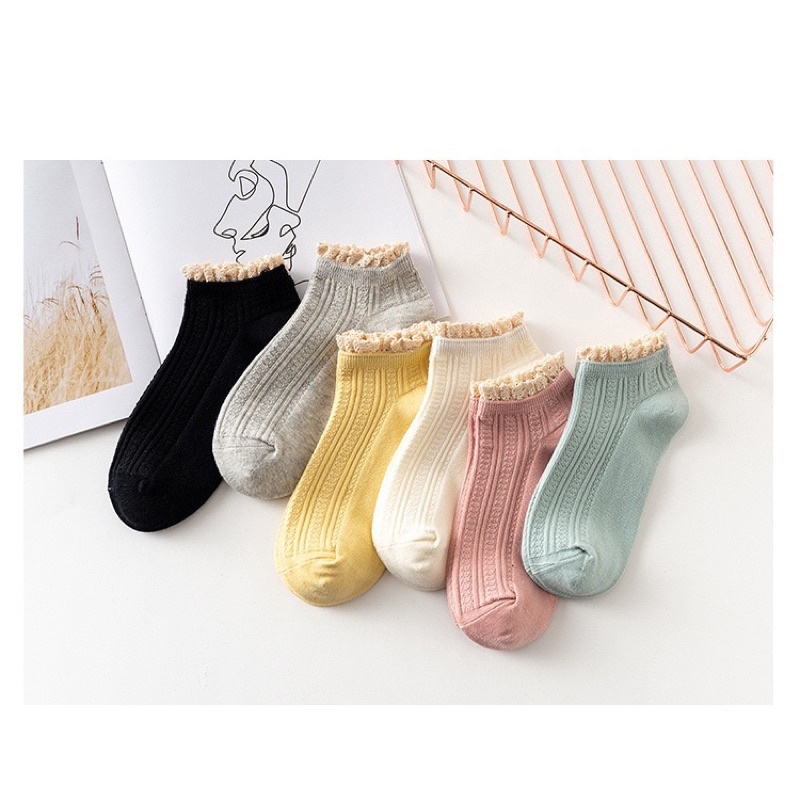 Giới thiệu Set 10 Đôi Tất Nữ Cổ Ngắn Nhún Bèo phong cách Hàn Quốc xinh xắn dễ thương nhiều màu