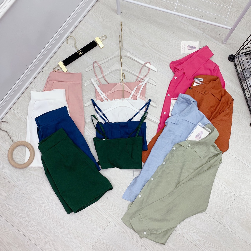Giới thiệu Set 3 món áo sơ mi mix áo bra 2 dây quần short đùi nữ set bộ đi biển