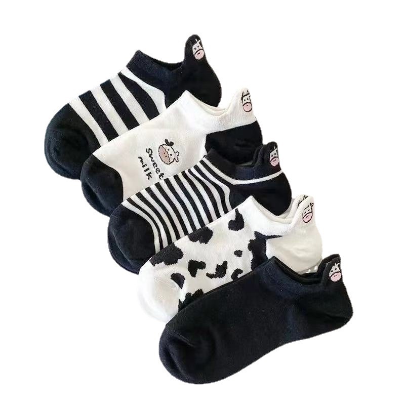 Set 5 đôi tất cổ ngắn gót thêu hình bò sữa