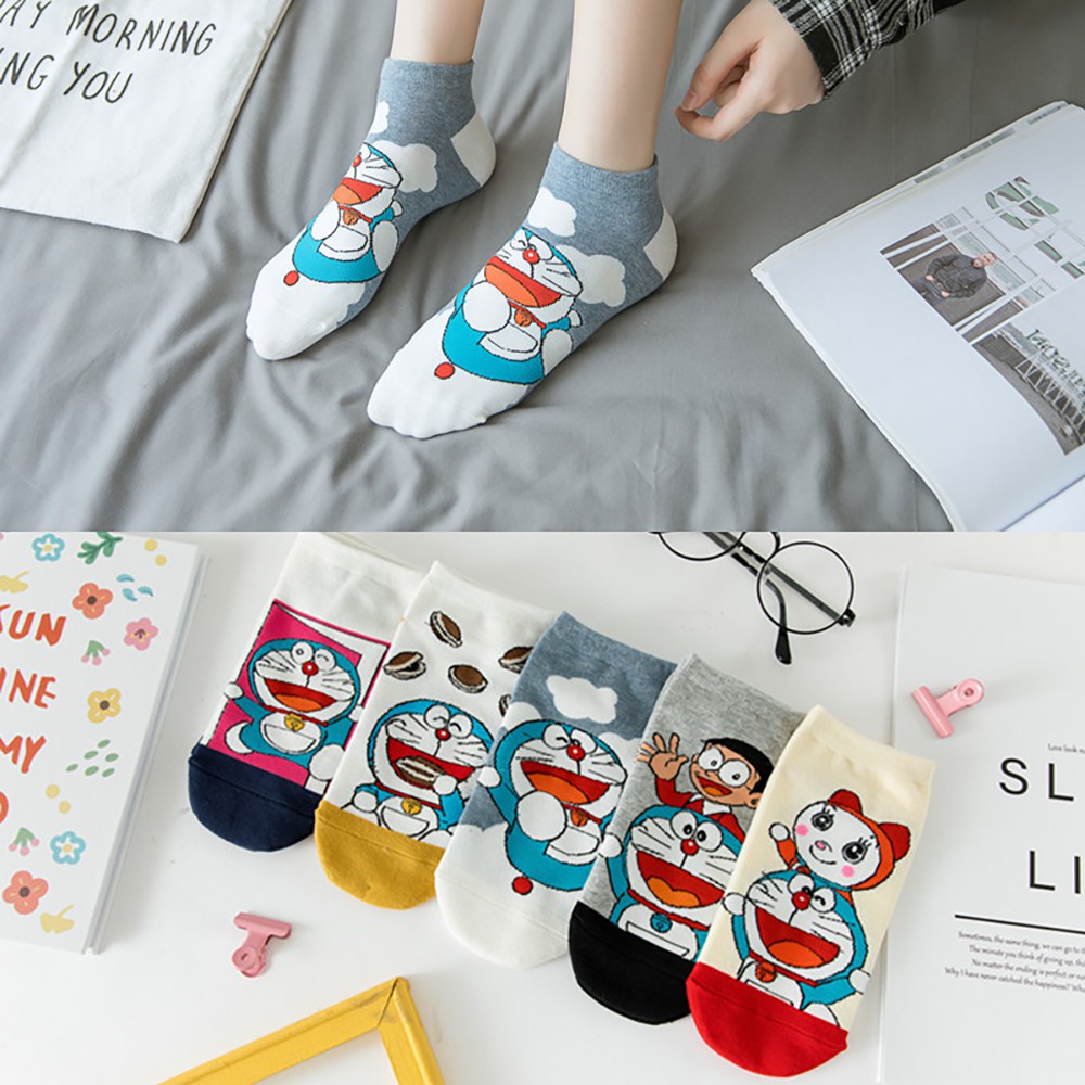 Giới thiệu Set 5 đôi Tất vớ nam nữ cổ ngắn hình Doreamon phong cách hàn quốc Micado