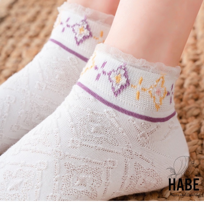 Giới thiệu Set 5 đôi tất vớ nữ vintage cổ ngắn cotton Hàn Quốc thông hơi khử mùi hoạ tiết dễ thương HABE TV04