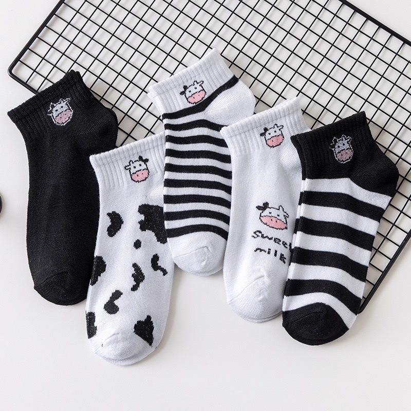 Set 5 tất bò sữa Bivota tất cổ ngắn hàn quốc unisex cực xinh T128