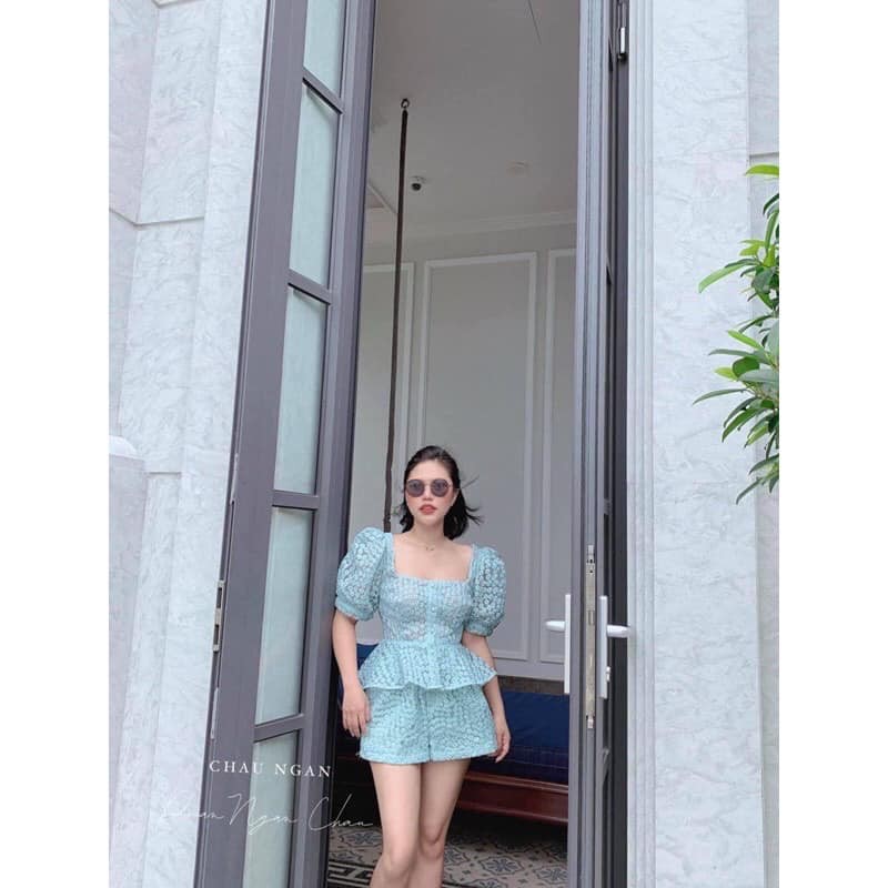 Giới thiệu SET ÁO XÒE PEPLUM REN HOA XANH NỔI + SHORT SIÊU XINH