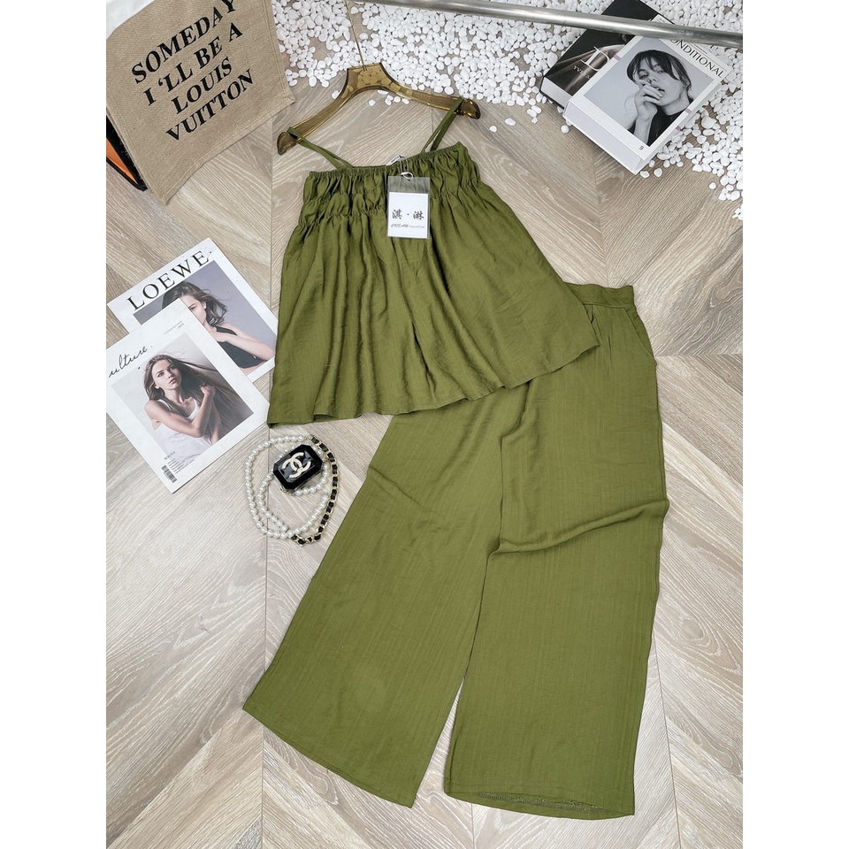 Giới thiệu Set áo 2 dây chun ngực quần ống rộng siêu hot TH558