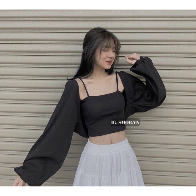 Thời Trang Nữ > Áo > Khác || Set áo caridigan kèm áo 2 dây croptop trắng vải thun borip - C0N
