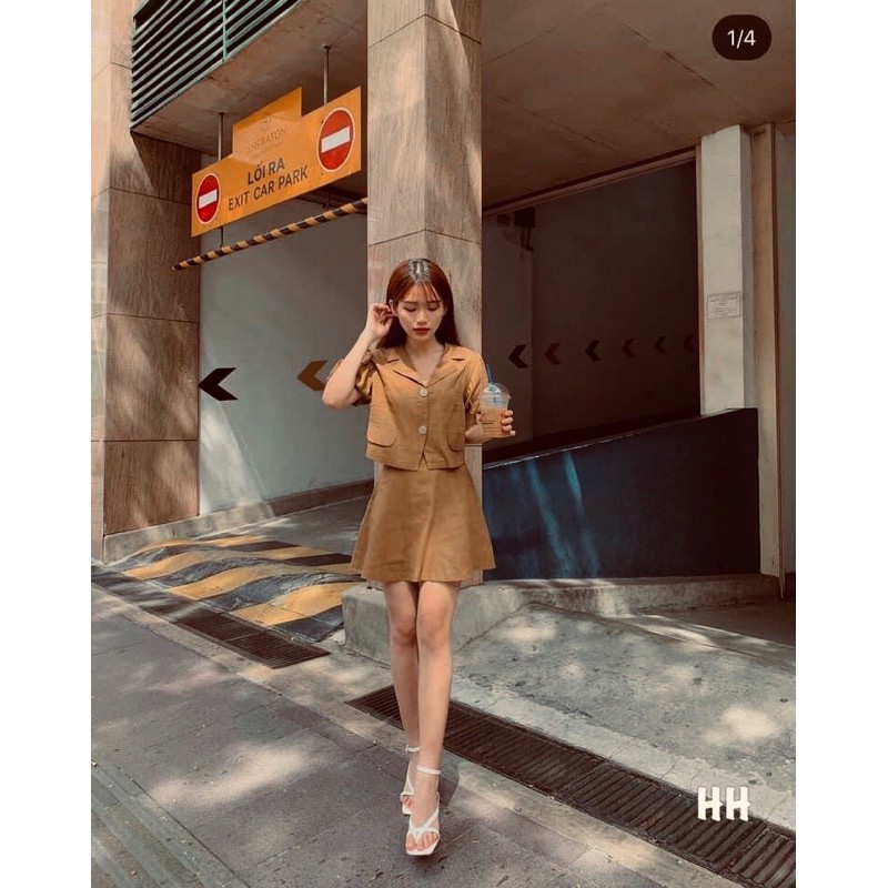 Thời Trang Nữ > Quần đùi > Quần váy || Set áo cổ vest tay bồng + quần váy