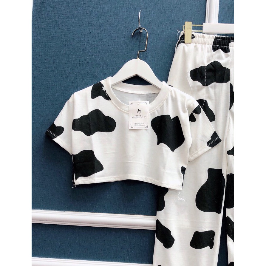 + Áo phông croptop bò sữa, cổ tròn, tay ngắn, họa tiết bò sữa cực chất. Phù hợp các nàng có style trẻ trung, năng động.