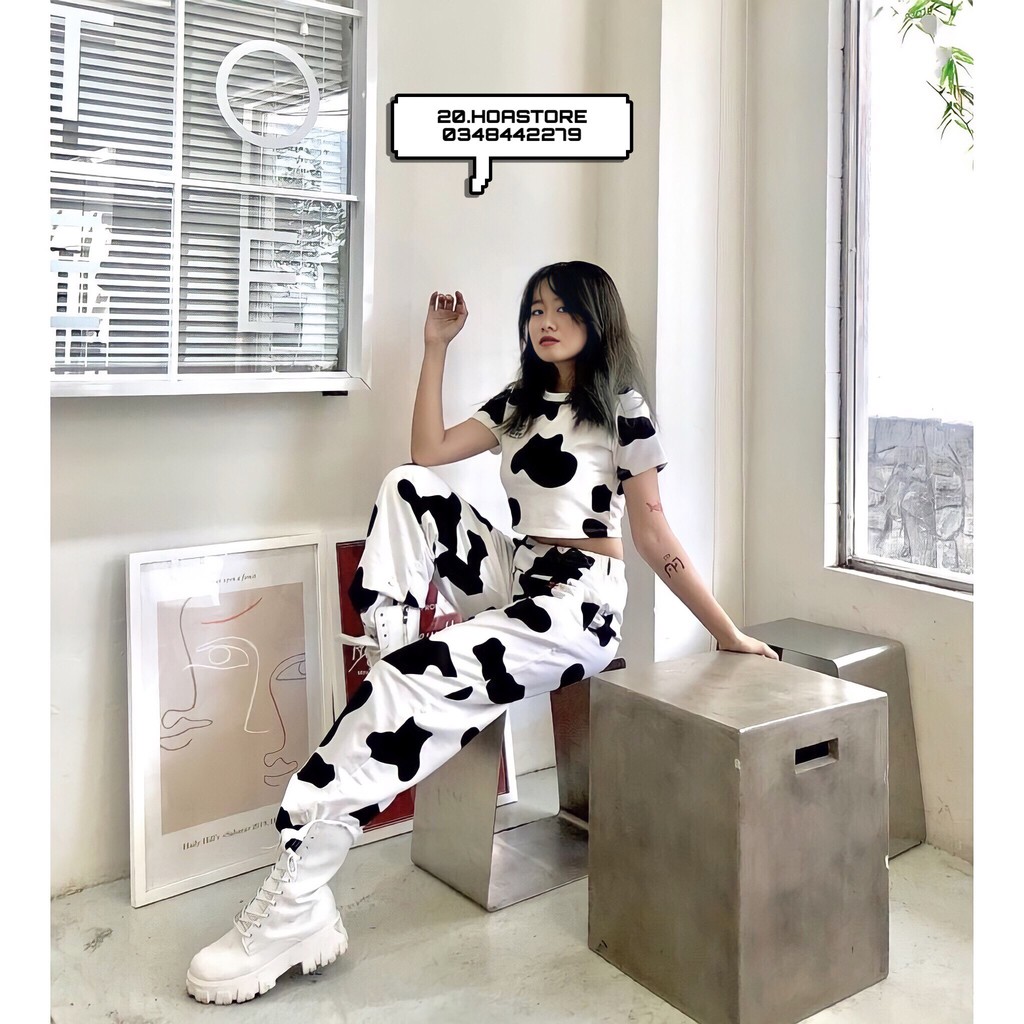 Giới thiệu Set Áo Croptop BÒ SỮA Và Quần Jogger Thể Thao Unisex Boom Thụng Bo Chun Bò Sữa Hot trend